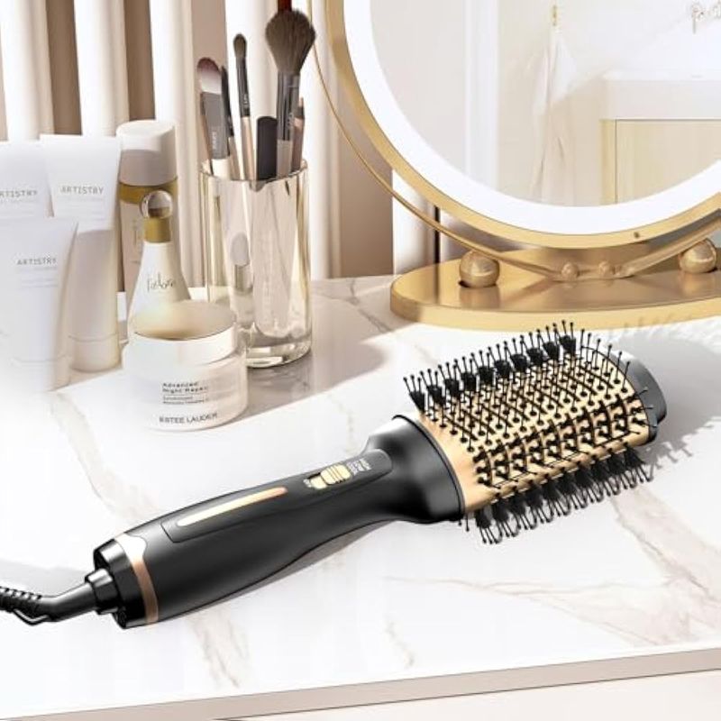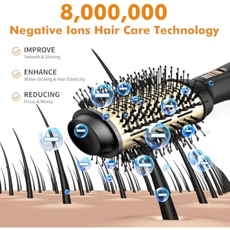 Tecnología de iones negativos de 800 millones, más suave y libre de encrespamiento: este potente cepillo secador de pelo adopta tecnología iónica negativa avanzada; neutraliza la estática y suaviza la cutícula del cabello, bloquea rápidamente la humedad y reduce el encrespamiento para añadir elegancia y brillo a cada mechón; el resultado es un aspecto más saludable y pulido con cada uso; disfruta del encrespamiento Cabello libre y renovado ¡Incluso al día siguiente! Siempre listo para lucir elegante en cualquier ocasión