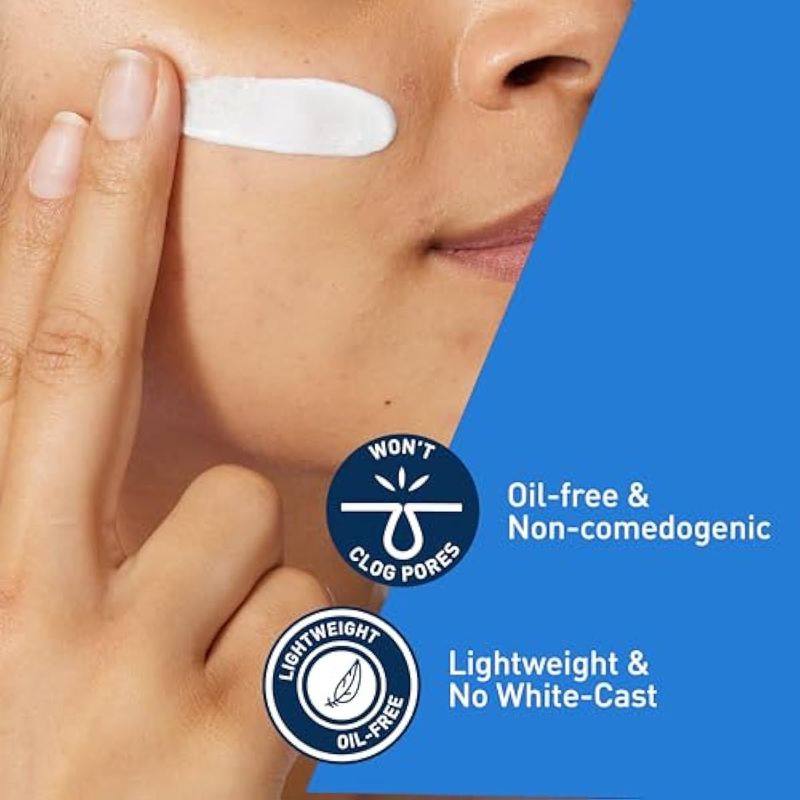Desarrollada con dermatólogos, la loción hidratante ultraligera CeraVe con SPF 30 hidrata con un acabado mate y ayuda a reparar la barrera protectora de la piel. Contiene 3 ceramidas esenciales para reparar y restaurar la barrera protectora de la piel. Con una sensación ligera, esta crema hidratante facial se absorbe rápidamente en la piel. Se puede llevar solo o debajo del maquillaje.
