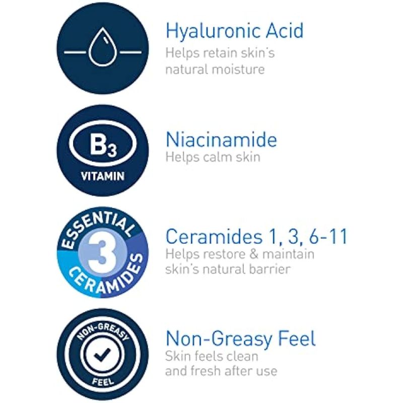 [3 ceramidas esenciales] Las ceramidas se encuentran naturalmente en la piel y constituyen el 50 de los lípidos en la barrera cutánea. Todos los productos CeraVe están formulados con tres ceramidas esenciales 1, 3, 6-II para ayudar a restaurar y mantener la barrera natural de la piel.