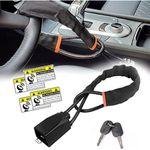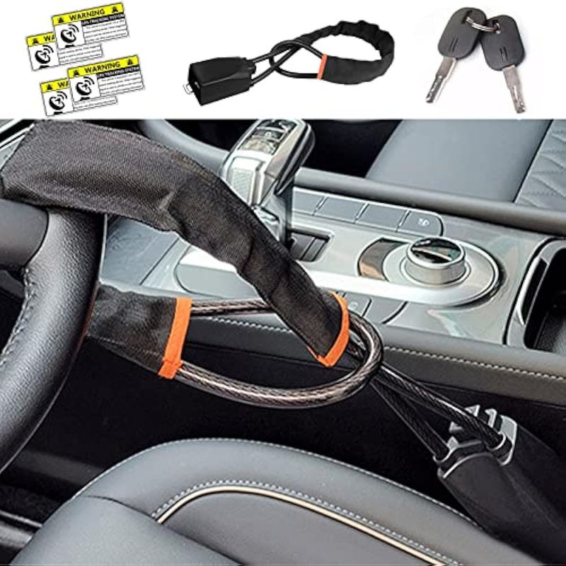 Dispositivo antirrobo de seguridad para automóvil: una vez que se bloquea, el ladrón no puede abrir el bloqueo del volante sin llaves. Nuestro dispositivo antirrobo para automóvil viene con 2 llaves. Cada cerradura tiene su llave individual. Otros que compraron el mismo producto no pueden entrar en su automóvil o usarlo. Nuestro bloqueo para volante evitará que los ladrones conduzcan tu automóvil, lo que presentará un obstáculo para que un ladrón supere. Mientras tenga un bloqueo en su volante, un ladrón pasará por su automóvil y buscará un objetivo más fácil.