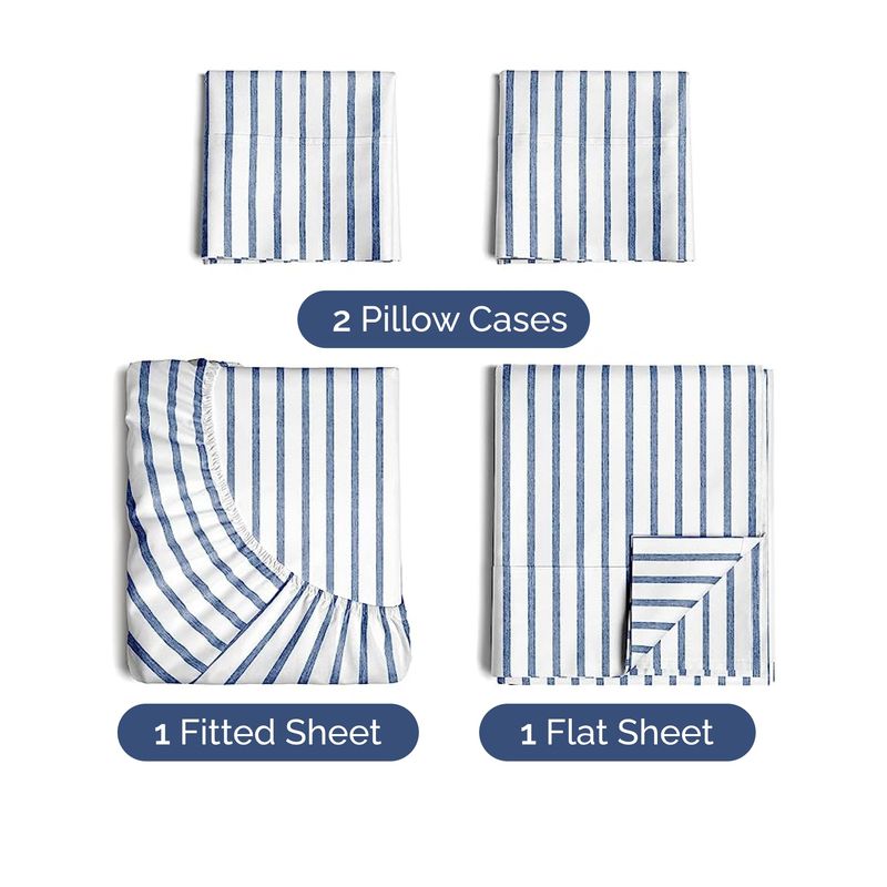 Juego de sábanas de 6 piezas: 4 fundas de almohada, 1 sábana encimera y 1 sábana bajera. Sábana encimera 90 x 102 pulgadas Sábana bajera ajustable 60 x 80 pulgadas 4 fundas de almohada 20 x 30 pulgadas.