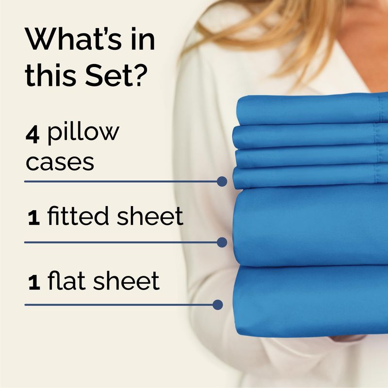 Juego de sábanas de 6 piezas: 4 fundas de almohada, 1 sábana encimera y 1 sábana bajera. Sábana encimera 90 x 102 pulgadas Sábana bajera ajustable 60 x 80 pulgadas 4 fundas de almohada 20 x 30 pulgadas.