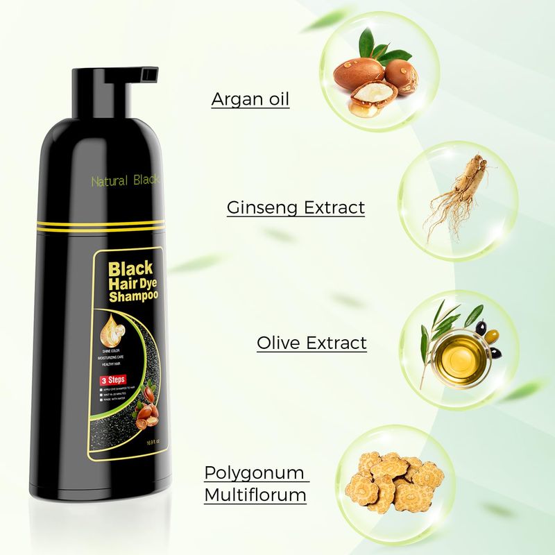 Champú 3 en 1 de tinte para el cabello negro, fórmula herbaria natural de argán, cubre cabello gris