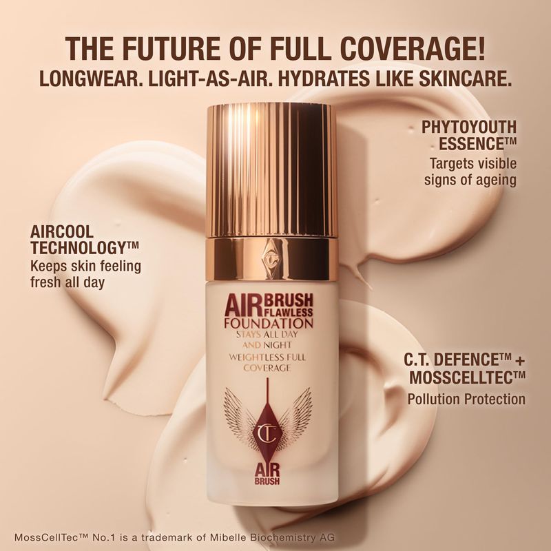 Charlotte Tilbury Base mate Airbrush Flawless - Maquillaje líquido de cobertura completa con un