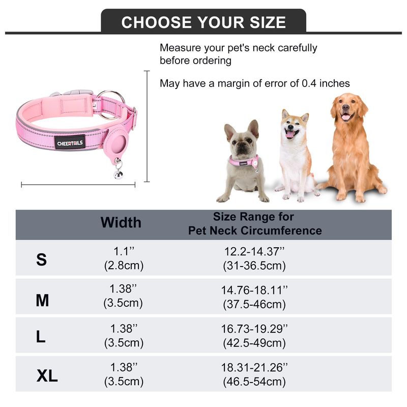 CHEERTAILS Air Tag - Collar reflectante para perro, paquete de 2 collares de perro, soporte