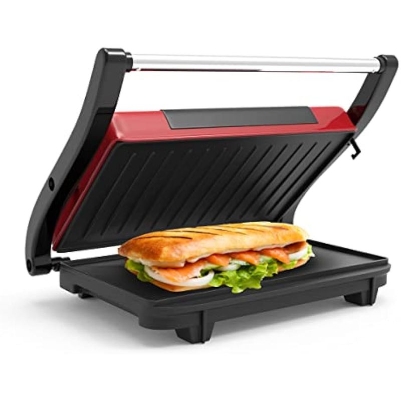 Chef Buddy Gourmet - Prensa Panini rojo – Sandwichera con platos antiadherentes – Hamburguesas de cocina para encimera de interior, filete, queso a la parrilla, 9.5 x 10.5 x 3, 82-SW100