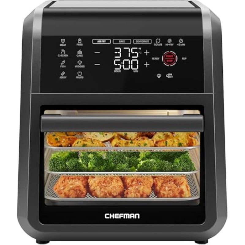 PEQUEÑOS ELECTRODOMÉSTICOSPEQUEÑOS COCINAFREIDORASChefman Horno freidora de aire 6 en 1 de 12 cuartos de galón con temporizador digital, pantalla