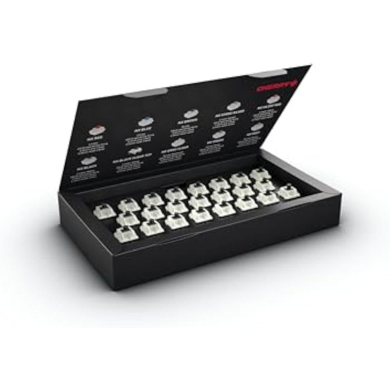 CHERRY combina la habilidad de ingeniería alemana de alta calidad con un diseño excepcional. Los primeros microinterruptores se produjeron en el sótano de un restaurante en Illinois en 1953. Los primeros teclados se construyeron 20 años después, haciendo de CHERRY el fabricante más antiguo de teclados de computadora. La producción de switches MX comenzó en 1983 y ahora se utilizan en millones de teclados en todo el mundo. Décadas de experiencia, pasión y herencia han hecho de la marca con CHERRY lo que encarna hoy en día: productos de calidad diseñados en Alemania dirigidos a cualquier persona con altas expectativas de rendimiento, diseño, durabilidad y funcionalidad de sus dispositivos de entrada. El MX BLACK CLEAR TOP es el interruptor perfecto para fanáticos retro, mecanógrafos frecuentes, jugadores y cualquier persona que valore el cambio lineal, así como una buena acústica sin clics. Además de la parte superior lechosa de la carcasa, estos interruptores también se destacan gracias a su resorte dorado y su fuerza de funcionamiento ligeramente mayor. Más de 50 millones de pulsaciones de teclas no son un problema. 23 interruptores por caja permiten a los entusiastas del teclado pedir solo la cantidad requerida por formato tamaño completo, TKL, 60.... Los interruptores se colocan firmemente en la caja, lo que evita que los pasadores de contacto se doblen. Además, el embalaje de cartón puro garantiza una reducción de los residuos.