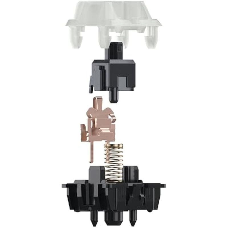 CHERRY Interruptores MX BLACK CLEAR TOP: Conmutación lineal sin punto de presión, fuerza operativa 63.5 cN, recorrido bajo de 0.079 in, recorrido completo de 0.157 in, sin ruido de clic