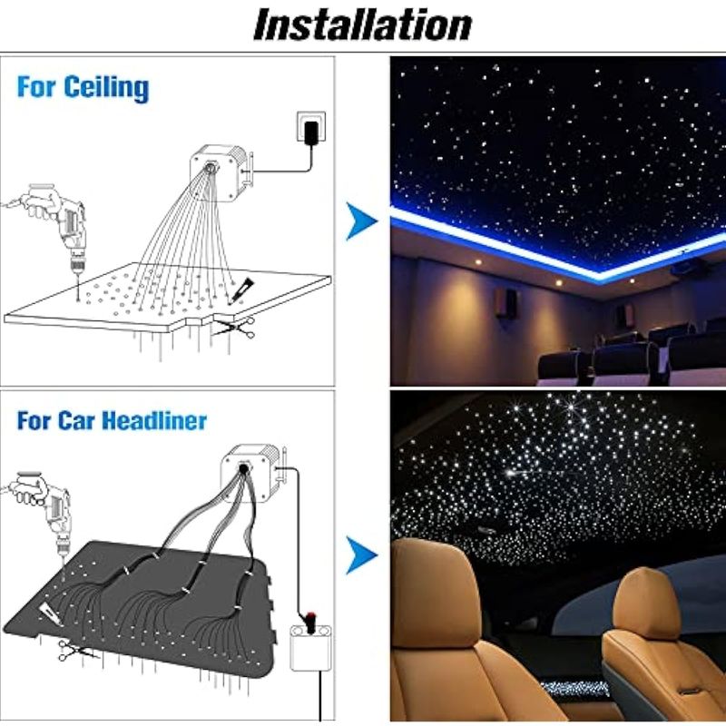 HOGARBAZARILUMINACIONCHINLY Twinkle - Juego de 370 luces de fibra óptica Starlight de 9.8 pies (0.03 pulgadas + 0.04