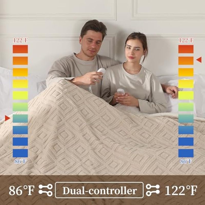 HOGARBLANQUERIAFRAZADACHIOKY Manta térmica eléctrica, 50 x 60 pulgadas, extra gruesa y cálida, con apagado automático de 4