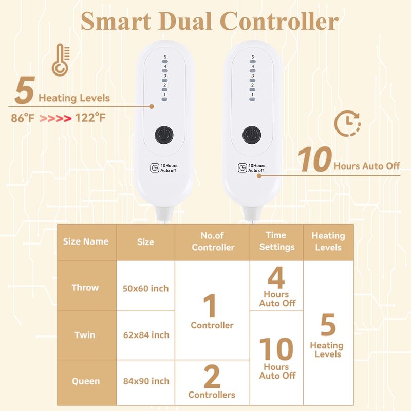 HOGARBLANQUERIAFRAZADACHIOKY Manta térmica eléctrica, 50 x 60 pulgadas, extra gruesa y cálida, con apagado automático de 4