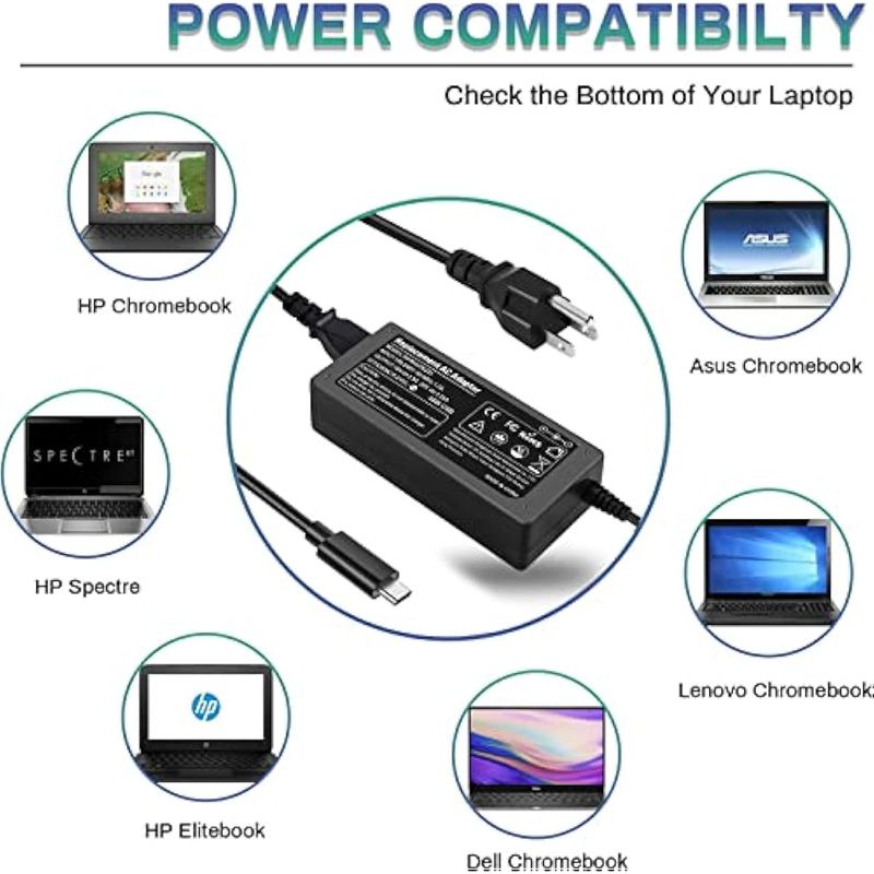 Chromebook Charger - Cargador rápido USB C de 45 W para laptop HP Spectre Lenovo Yoga Thinkpad Acer