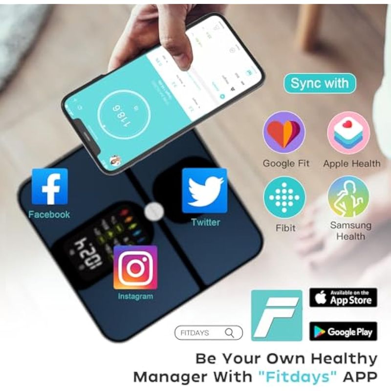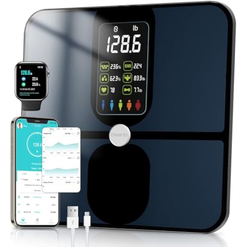 BELLEZA Y SALUDSALUD Y BIENESTARBALANZA PERSONALCHWARES - Báscula para peso corporal y grasa, báscula de peso recargable para pantalla grande,