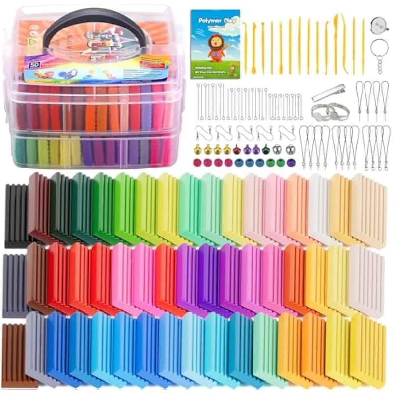 CIARAQ KIT DE INICIACIóN DE ARCILLA POLIMéRICA, ARCILLA PARA MODELAR HORNO CON HERRAMIENTAS DE ESCULTURA, 50 COLORES, 2.8 LIBRAS