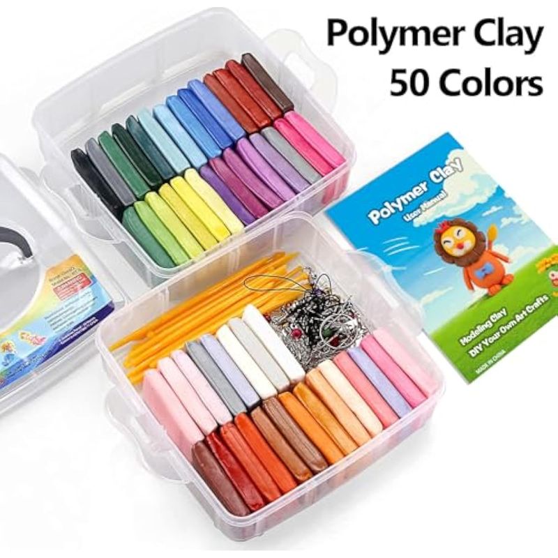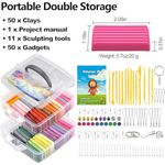 Paquete: Una caja de almacenamiento de plástico, 50 piezas de arcilla polimérica, embalaje de bolsa de PE de arcilla simple, herramientas de modelado creativas, accesorios y folleto de proyectos, pesa 2.8 libras en total