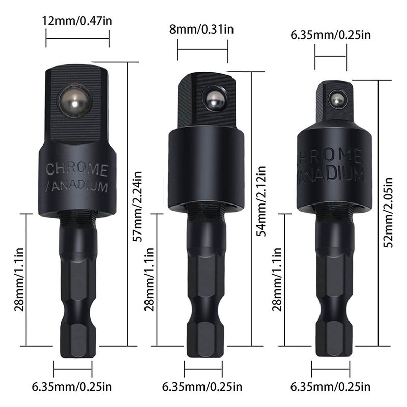 HERRAMIENTASHERRAMIENTAS ELECTRICASTALADROSCIGOTU Juego de extensión de adaptador de llaves de mano de grado de impacto, 3 piezas de 1/4 3/8