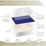 Doble revestimiento impermeable y tecnología de separación antihilo: la capa de tela de lona está impregnada con revestimiento impermeable, la doble capa impermeable evita excelente y eficazmente la penetración del agua de lluvia, por lo que es adecuado para uso en exteriores. El parche de reparación adopta tecnología de separación anti-hilo, lo que hace que el hilo del parche sea más firme y apretado, el borde es suave y limpio después del corte, el hilo no es fácil de aflojar y separar, lo que es más duradero que otros productos similares