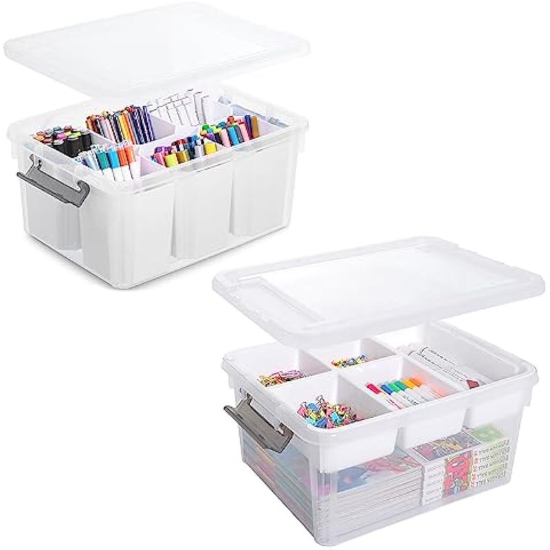 ARTE, LIBRERÍA Y OFICINAMERCERIACitylife - Paquete de 2 cajas de almacenamiento de plástico de 17 cuartos de galón con bandeja
