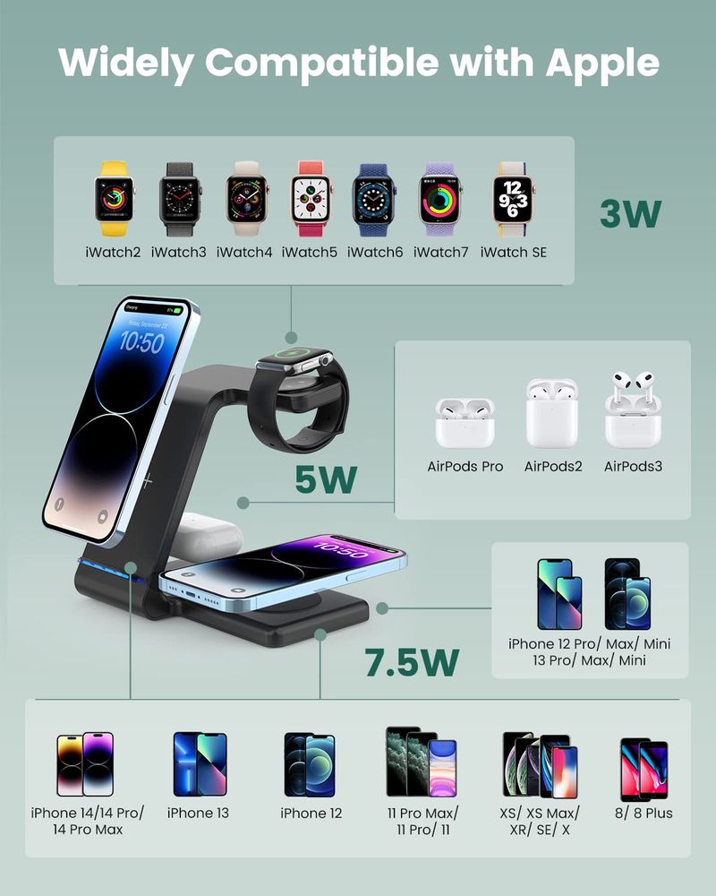 CIYOYO Cargador inalámbrico, soporte de carga inalámbrica rápida de 15 W [adaptador incluido],