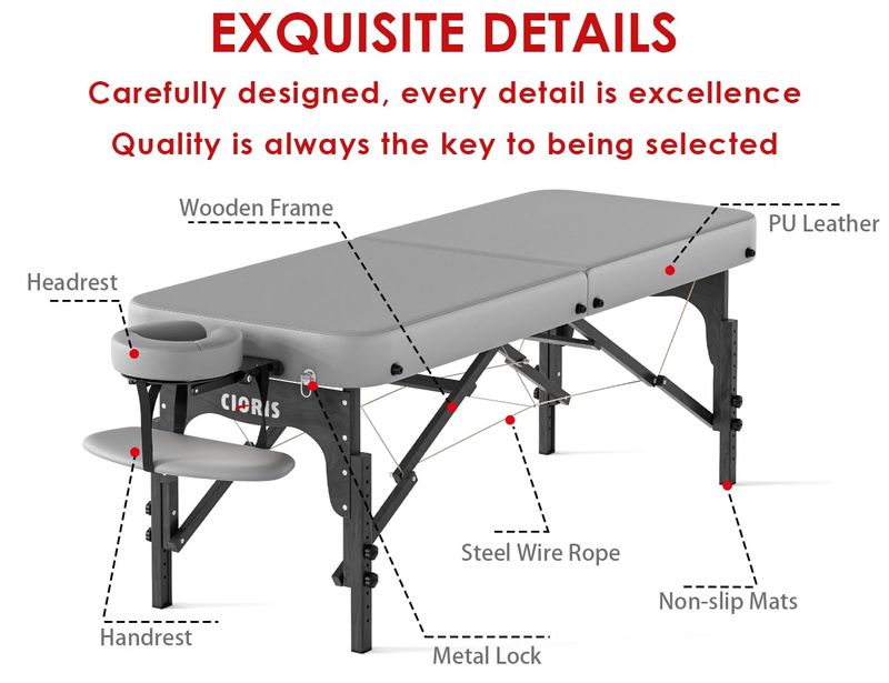 BELLEZA Y SALUDBELLEZA Y CUIDADO CORPORALCLORIS Mesa de masaje profesional de 84 pulgadas, patas de madera reforzada, portátil, 2 plegables,