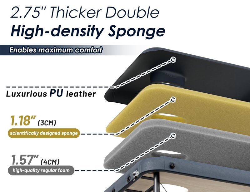 CLORIS Mesa de masaje profesional de 84 pulgadas, portátil, 3 plegables, ligera, para salón facial,