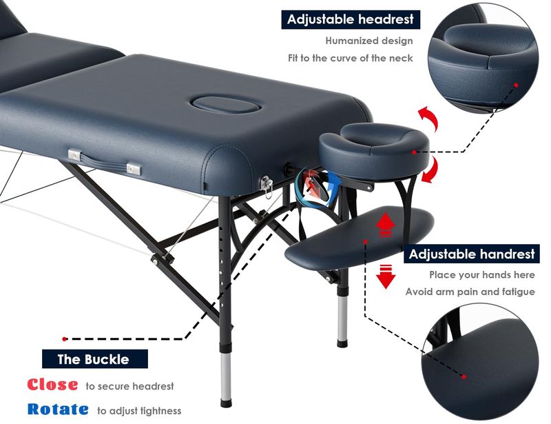 BELLEZA Y SALUDBELLEZA Y CUIDADO CORPORALCLORIS Mesa de masaje profesional de 84 pulgadas, portátil, 3 plegables, ligera, para salón facial,