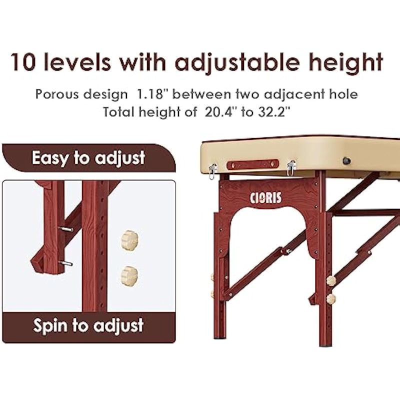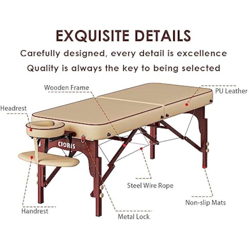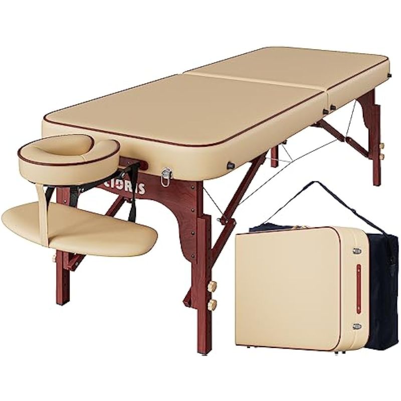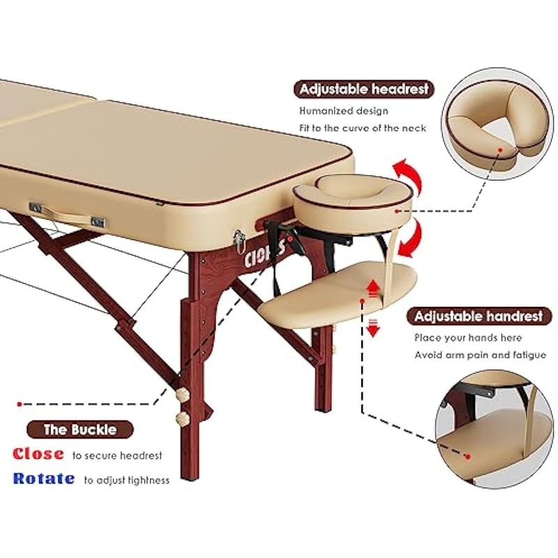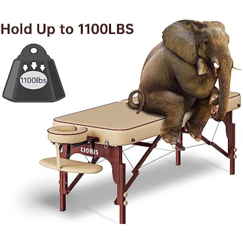 CLORIS MESA DE MASAJE PROFESIONAL DE 84 PULGADAS, PORTáTIL, CON PATAS DE MADERA REFORZADA, SOPORTA HASTA 1100 LIBRAS, 2 PLEGABLES, LIGERAS, SPA, SOLON, CAMA DE MASAJE PARA TATUAJES, ALTURA AJUSTABLE CON BOLSA DE TRANSPORTE
