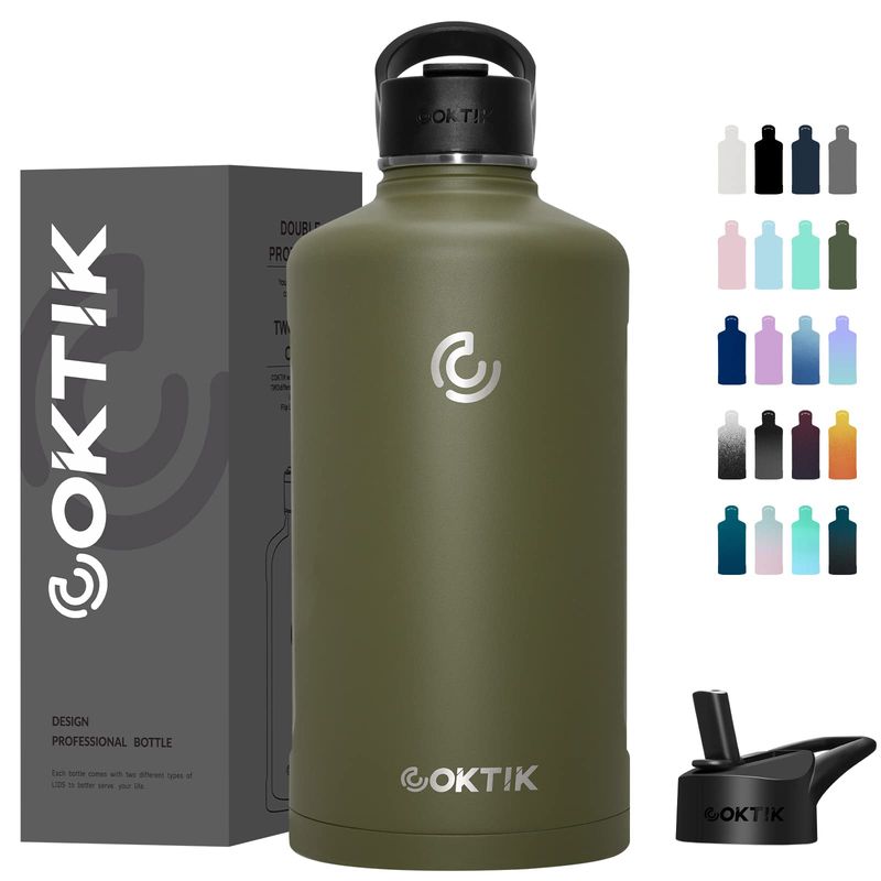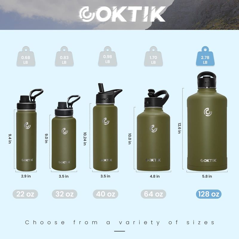 COKTIK Botella de agua aislada de acero inoxidable con tapa con popote, 22 onzas de boca ancha,