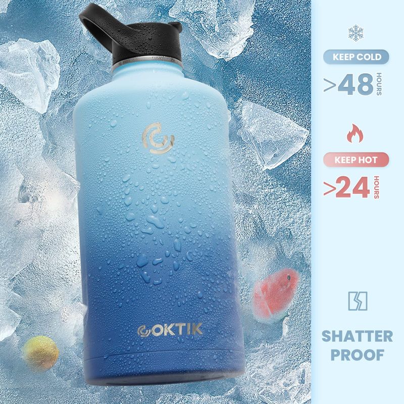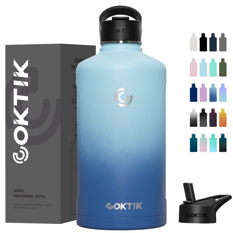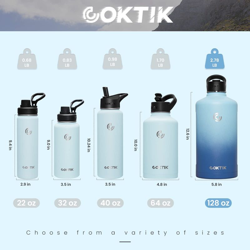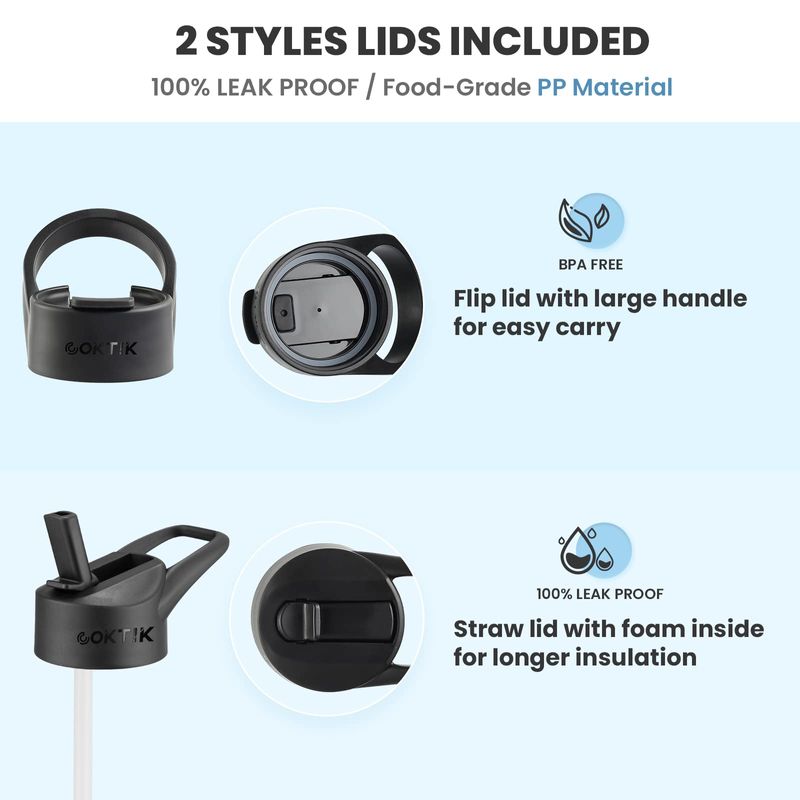 COKTIK Botella de agua aislada de acero inoxidable con tapa con popote, 22 onzas de boca ancha,