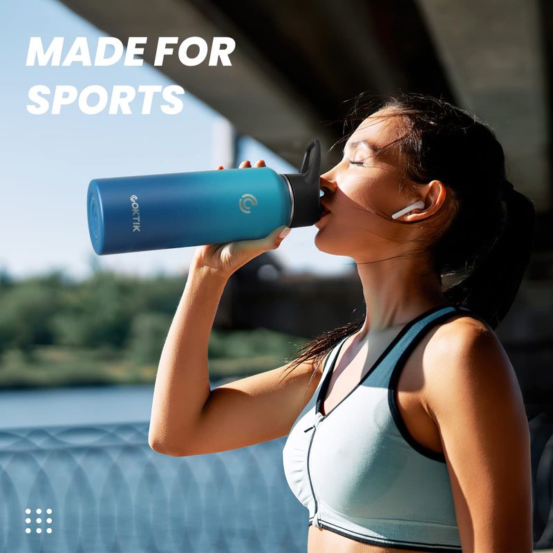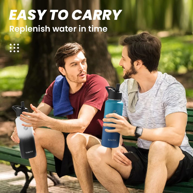 Aislamiento al vacío: la botella de agua aislada de acero inoxidable COKTIK ha elegido cuidadosamente la tecnología de aislamiento al vacío de doble pared. La bebida se mantendrá caliente durante 12 horas y se mantendrá fría durante 24 horas. La función de doble pared resiste la condensación en su capa exterior.