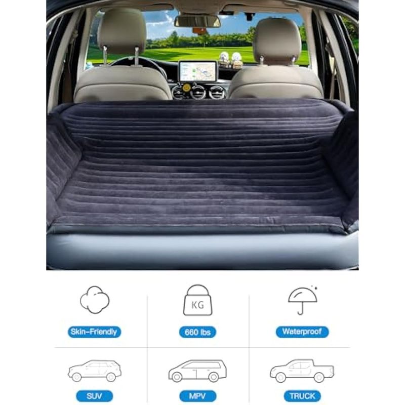 JARDÍNCAMPINGCOLCHONES INFLABLESColchón de aire mejorado para SUV con bomba incorporada inalámbrica y alas de colchón, colchón de