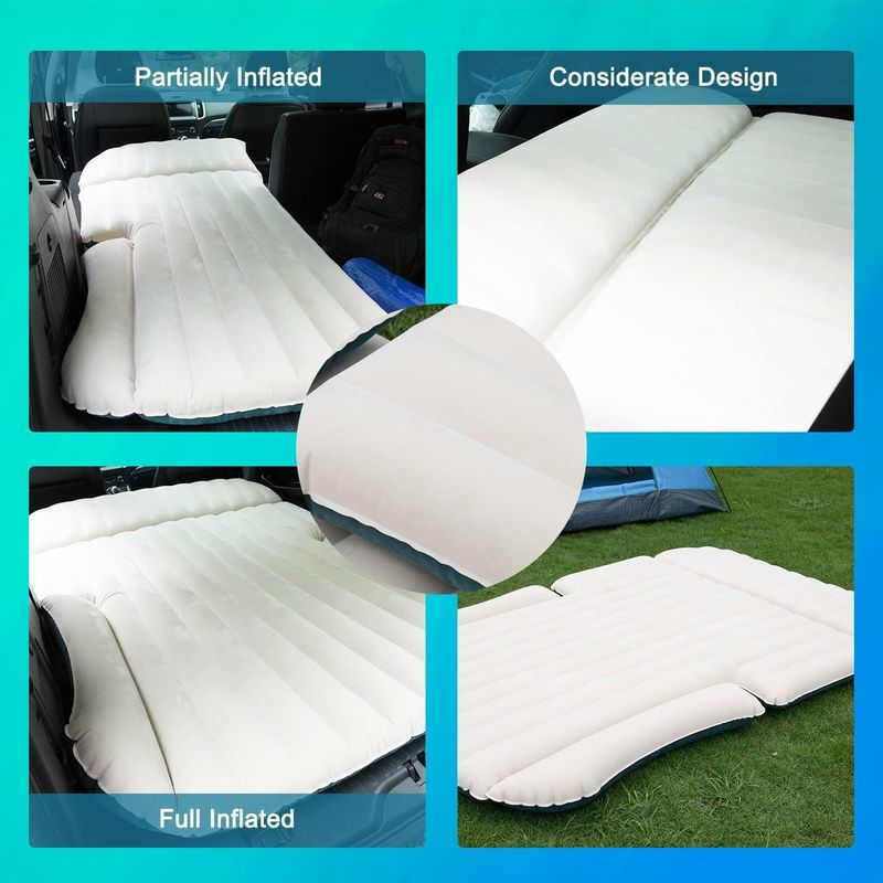 4 segmentos separados para inflar: el colchón de dormir para automóvil está diseñado con una línea oculta en el medio que separa el colchón de dormir del automóvil en 4 segmentos de inflado. Puedes inflar completamente el colchón de dormir para que varias personas lo usen o parcialmente 40 o 60 inflar para una sola persona, lo que mejor se adapte al espacio trasero de tu SUV