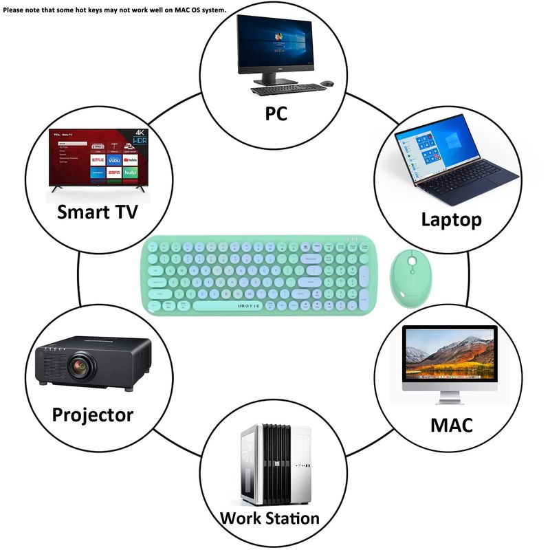 COMBINACIóN DE TECLADOS INALáMBRICOS Y MOUSE, UBOTIE COLORIDO DEGRADADO ARCO IRIS DE COLORES RETRO MáQUINA DE ESCRIBIR TECLADO FLEXIBLE, CONEXIóN DE 2.4 GHZ Y MOUSE óPTICO