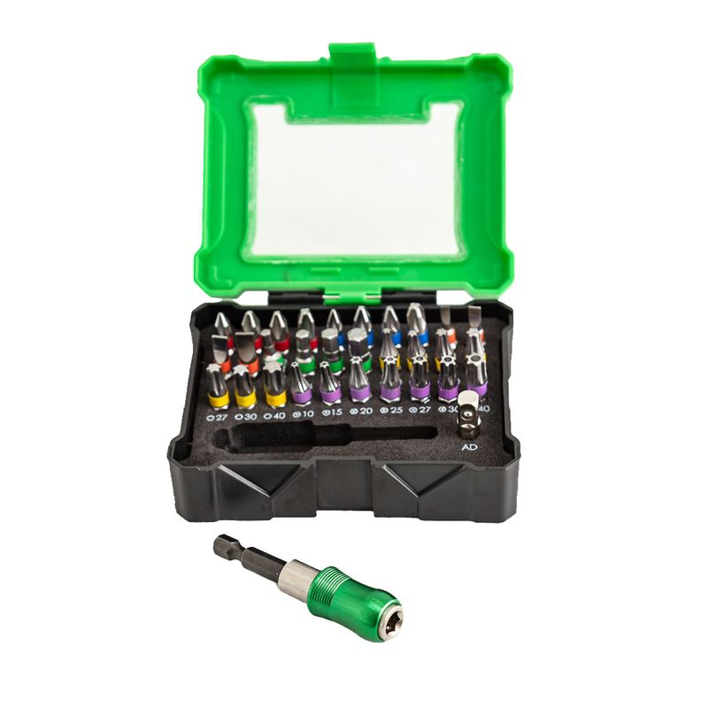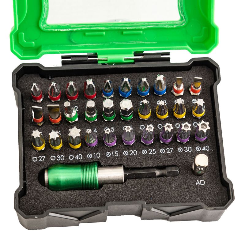 Combo Taladro Atornillador 10 Mm + Set De Puntas 32 Piezas