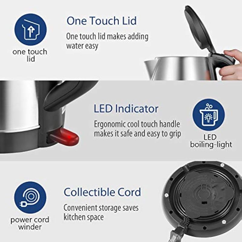 PEQUEÑOS ELECTRODOMÉSTICOSPEQUEÑOS COCINAPAVAS ELÉCTRICASComfee - Tetera eléctrica de acero inoxidable de 1.7 litros, hervidor de agua caliente sin BPA,