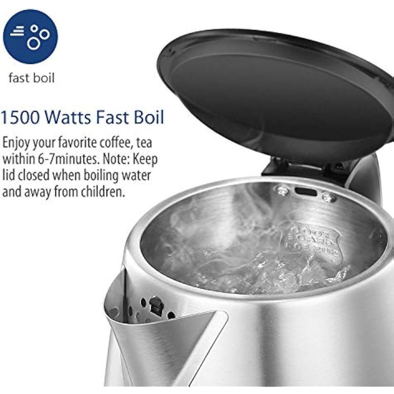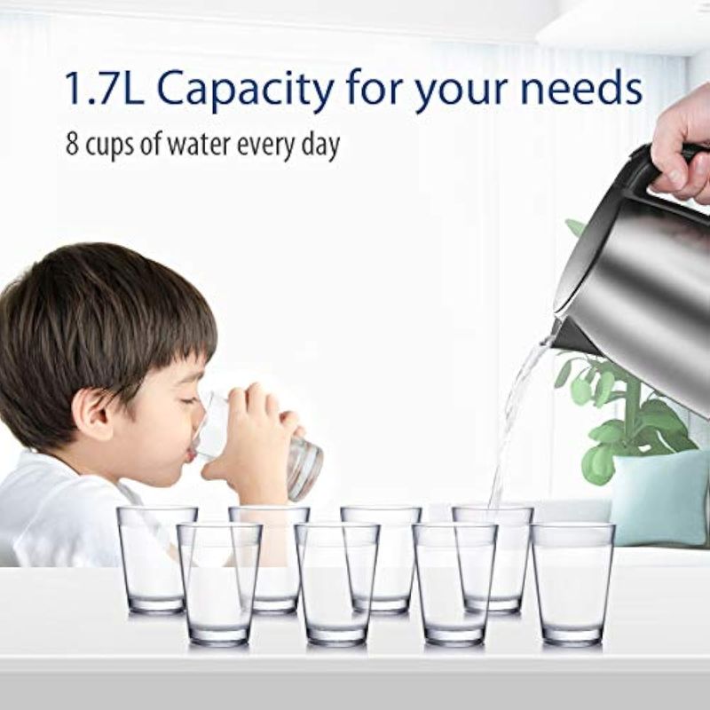 Comfee - Tetera eléctrica de acero inoxidable de 1.7 litros, hervidor de agua caliente sin BPA,