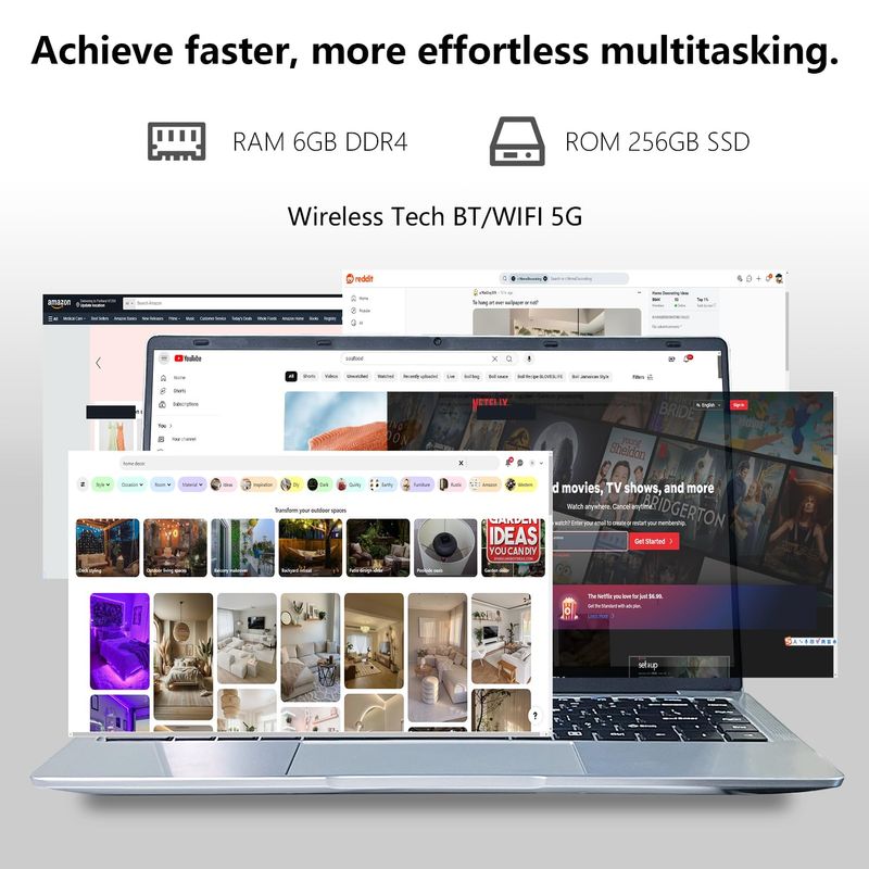 INFORMÁTICANOTEBOOKSComputadora portátil con Windows, portátil de 14.1 pulgadas, Quad Core, Windows 11, computadoras