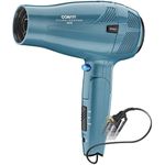 The Conair 1875 Watt Ionic Conditioning Cord-Keeper Hair Dryer with Folding Handle in Teal has a cord which retracts at the push of a button for easy storage. Keep things tidy and tangle-free with this 1875 Watt Hair Dryer. The folding handle is perfect for easy packing, compact storage and jet-setting travel. This powerful and lightweight hair dryer has Ionic Conditioning for smooth, shiny-looking hair and less frizz. The Tourmaline Ceramic Technology in this dryer for hair produces infrared heat, which gently dries hair quickly while ultimately reducing heat damage. 2 heatspeed settings for custom air flow and a Cool Shot locks style in place. In addition to the folding handle and retractable cord, this dryer is Dual Voltage, which makes this hair dryer excellent for worldwide travel. Dual voltage and the folding handle make this styler an ideal travel companion. Refer instruction manual before use.