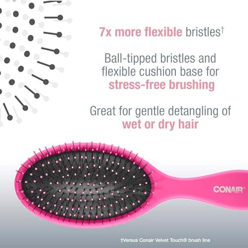 El cepillo desenredante de Conair se desliza fácilmente a través del cabello húmedo o seco sin enganchar o tirar. Utilizalo en cabellos lisos, rizados o gruesos, las cerdas no tironean y el cabello se vuelve libre de enredos de forma rápida y sin dolor. Ideal para niños. El paquete viene con 3 cepillos.