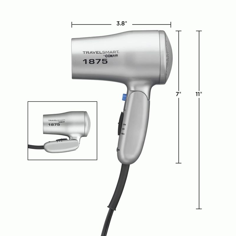 Conair Secador de pelo compacto de doble voltaje de 1875 vatios con mango plegable, gris