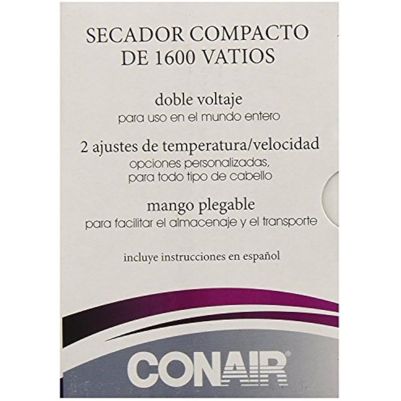 El secador de pelo compacto con mango plegable Conair de 1600 vatios es convenientemente transportable, compacto y equipado con doble voltaje para viajes por todo el mundo. Este secador tiene un mango plegable que hace que sea fácil de empacar en una maleta o almacenar en un cajón. Completo con 2 ajustes de calorvelocidad para personalizar tu experiencia de secado del cabello y cable de 5 pies. El voltaje dual te permite utilizar esta secadora en casa y en el extranjero.