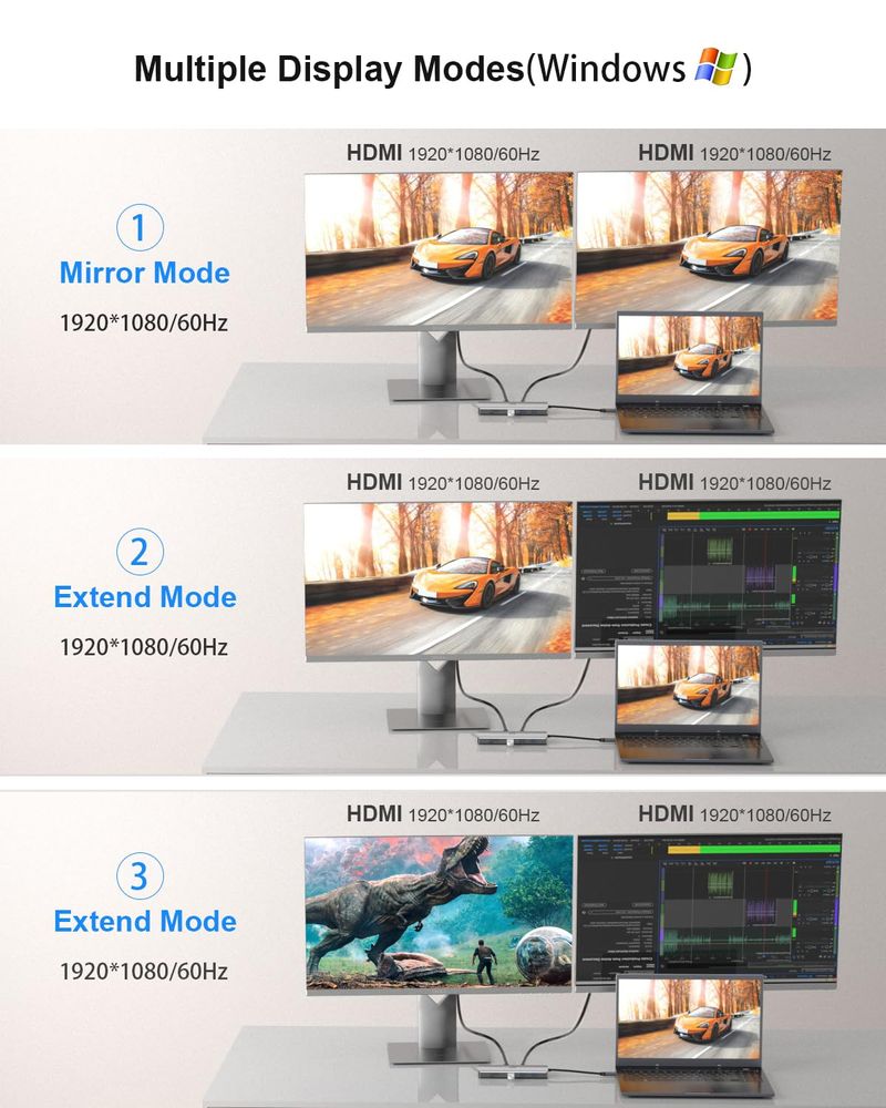 Estación de acoplamiento de triple pantalla: estación de acoplamiento de triple pantalla SUTOUG con HDMI 4K dual y un puerto Ethernet Gigabit de 1000 Mbps, admite duplicar o extender tu portátil USB C a 3 pantallas simultáneamente, ampliando enormemente tu espacio de trabajo y mejorando la eficiencia del trabajo.