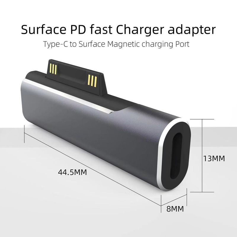 Conector de superficie a adaptador de carga USB-C, DC15V 102W tipo C hembra a Surface macho para
