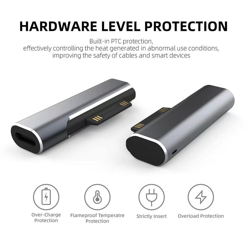 INFORMÁTICANOTEBOOKSConector de superficie a adaptador de carga USB-C, DC15V 102W tipo C hembra a Surface macho para