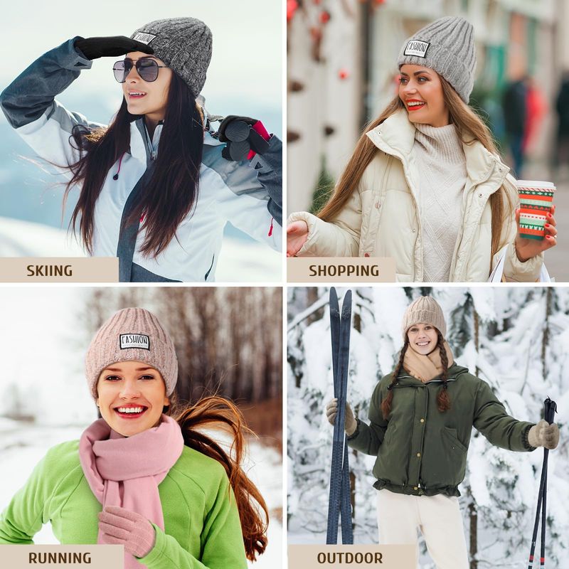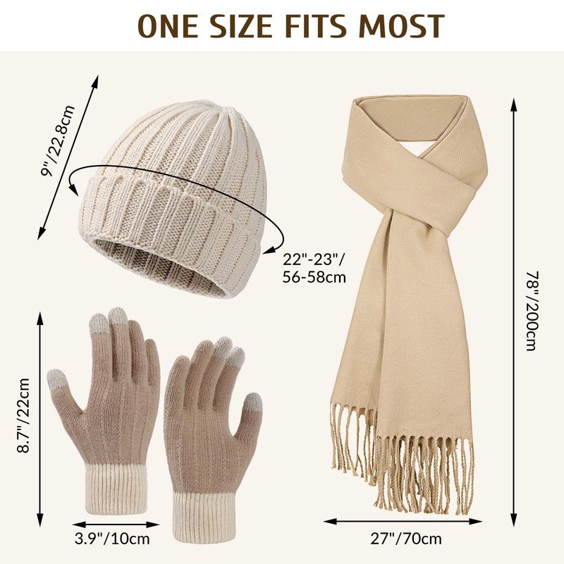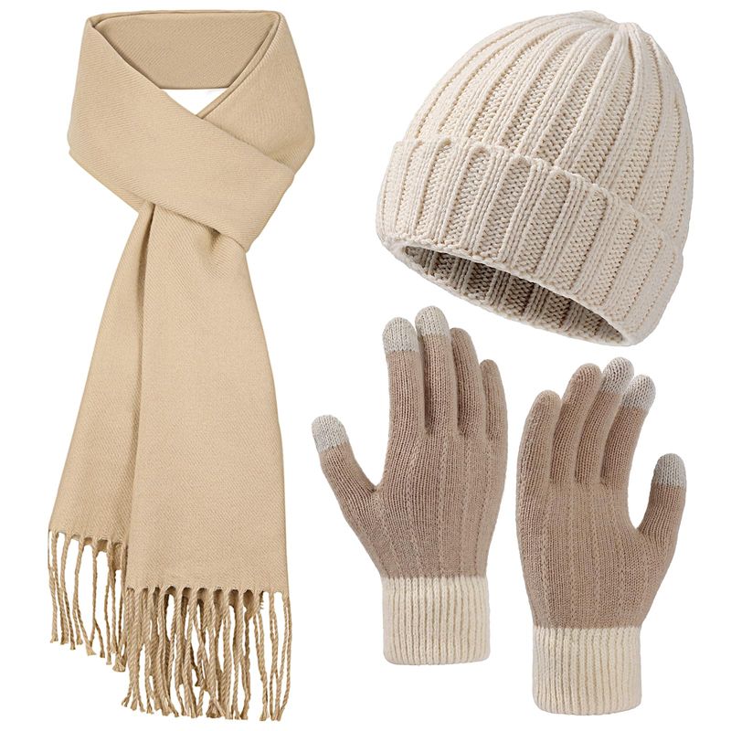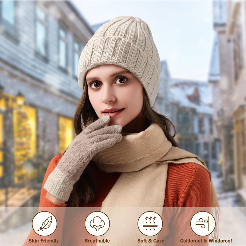 HOGARINDUMENTARIA Y ACCESORIOSConjunto de 3 guantes para pantalla táctil, gorro de invierno, gorro largo, con forro polar, suave y