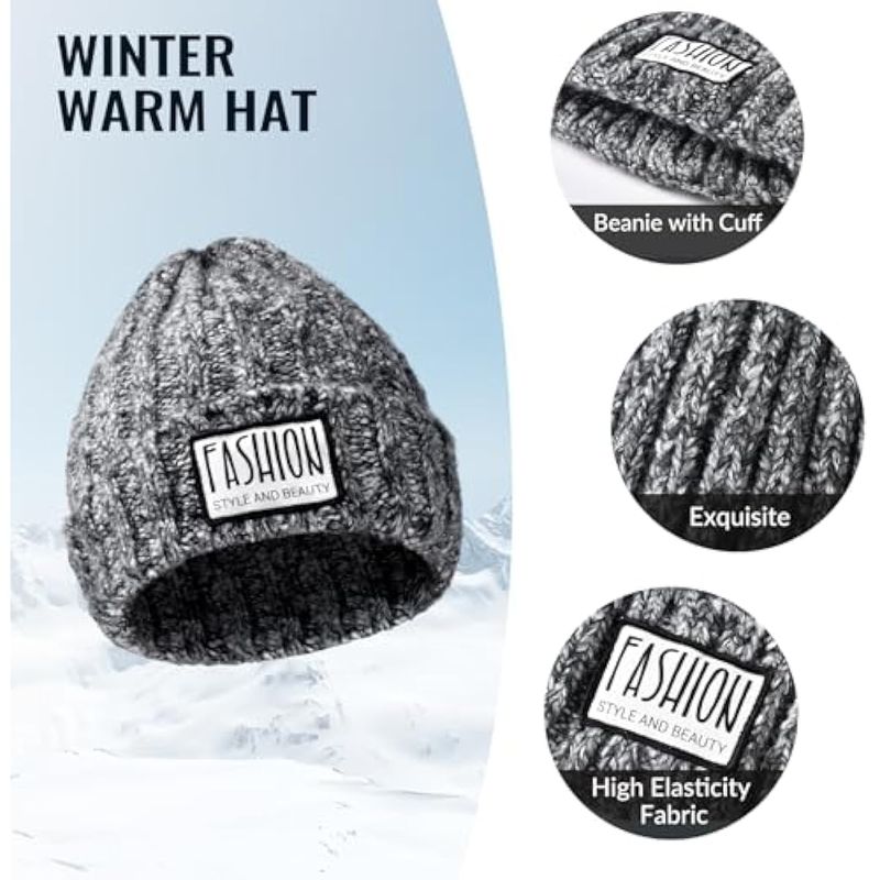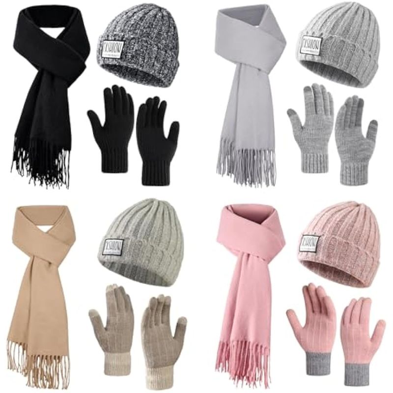 HOGARINDUMENTARIA Y ACCESORIOSConjunto de 3 guantes para pantalla táctil, gorro de invierno, gorro largo, con forro polar, suave y