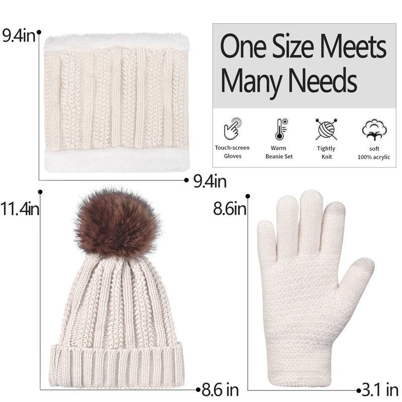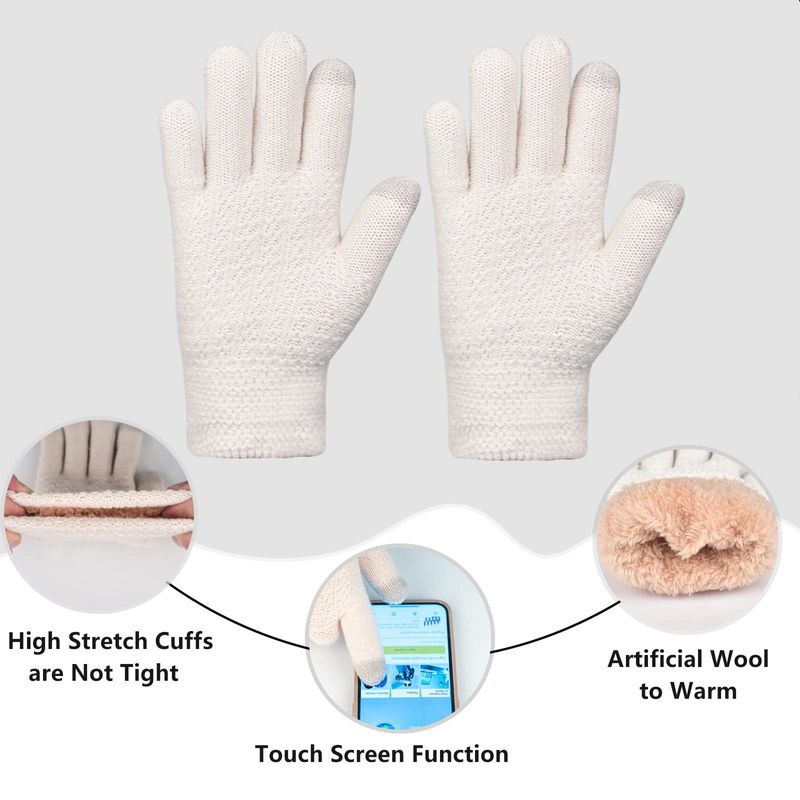 Conjunto de guantes de invierno para mujer, gorro de forro polar, bufanda para pantalla táctil,