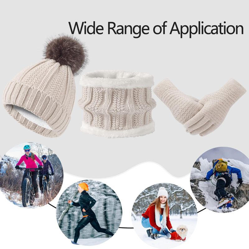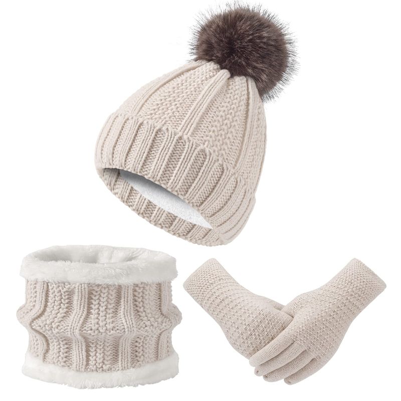 HOGARINDUMENTARIA Y ACCESORIOSConjunto de guantes de invierno para mujer, gorro de forro polar, bufanda para pantalla táctil,