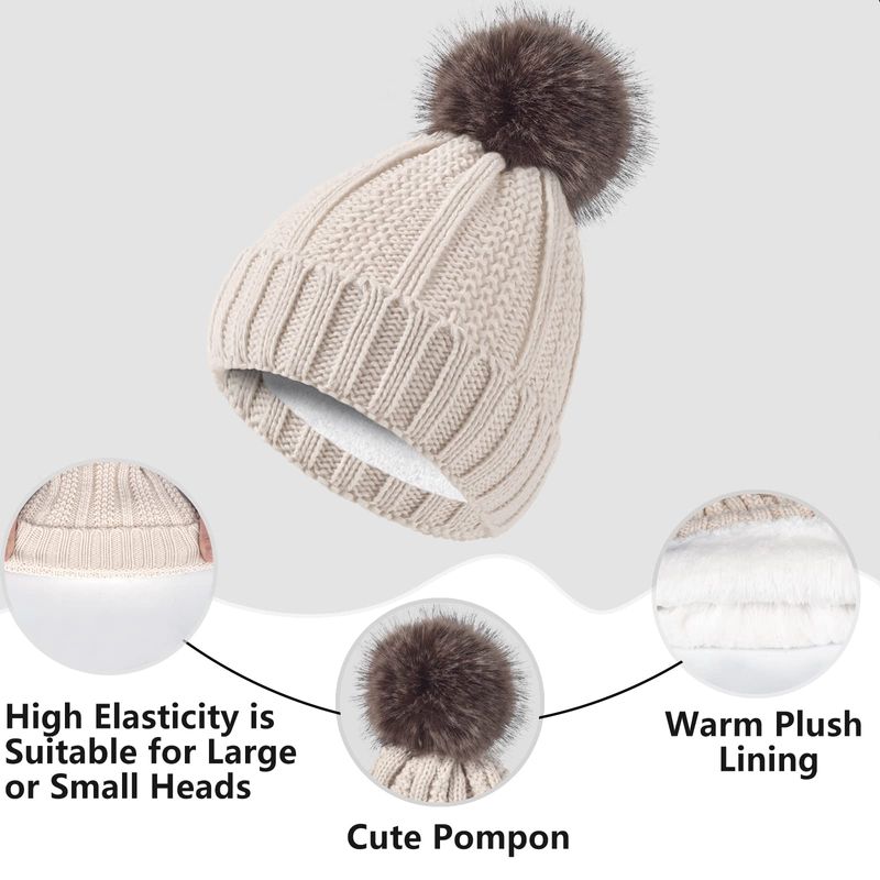 Conjunto de guantes de invierno para mujer, gorro de forro polar, bufanda para pantalla táctil, - Pardo